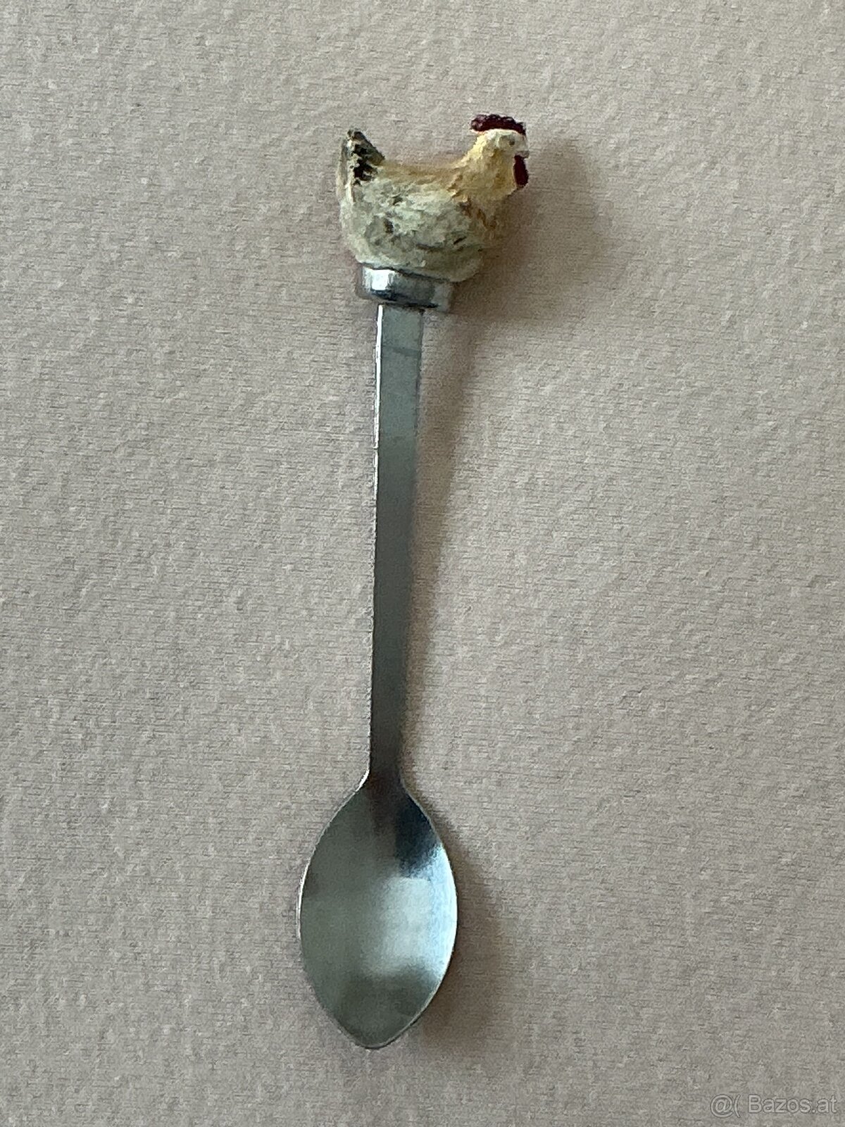 Kleine - 12,5 cm - Kuriosität: ein Eierlöffelchen mit Henne oben drauf. Vielleicht suchst Du ein witziges Geschenk für Ostern, dann greif zu! Um 2 € für Selbstabholer oder 5 € mit Postzustellung.